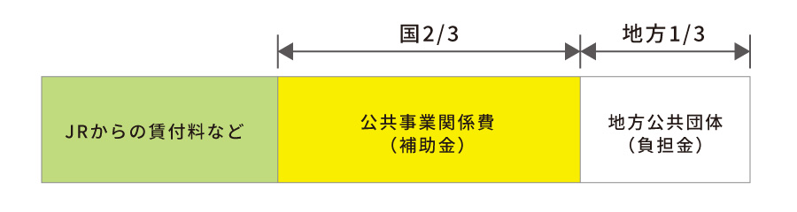 財源は、JRからの貸付料収入を充てた残りの部分について、国が3分の2、地方公共団体が3分の1を負担することとなっています。