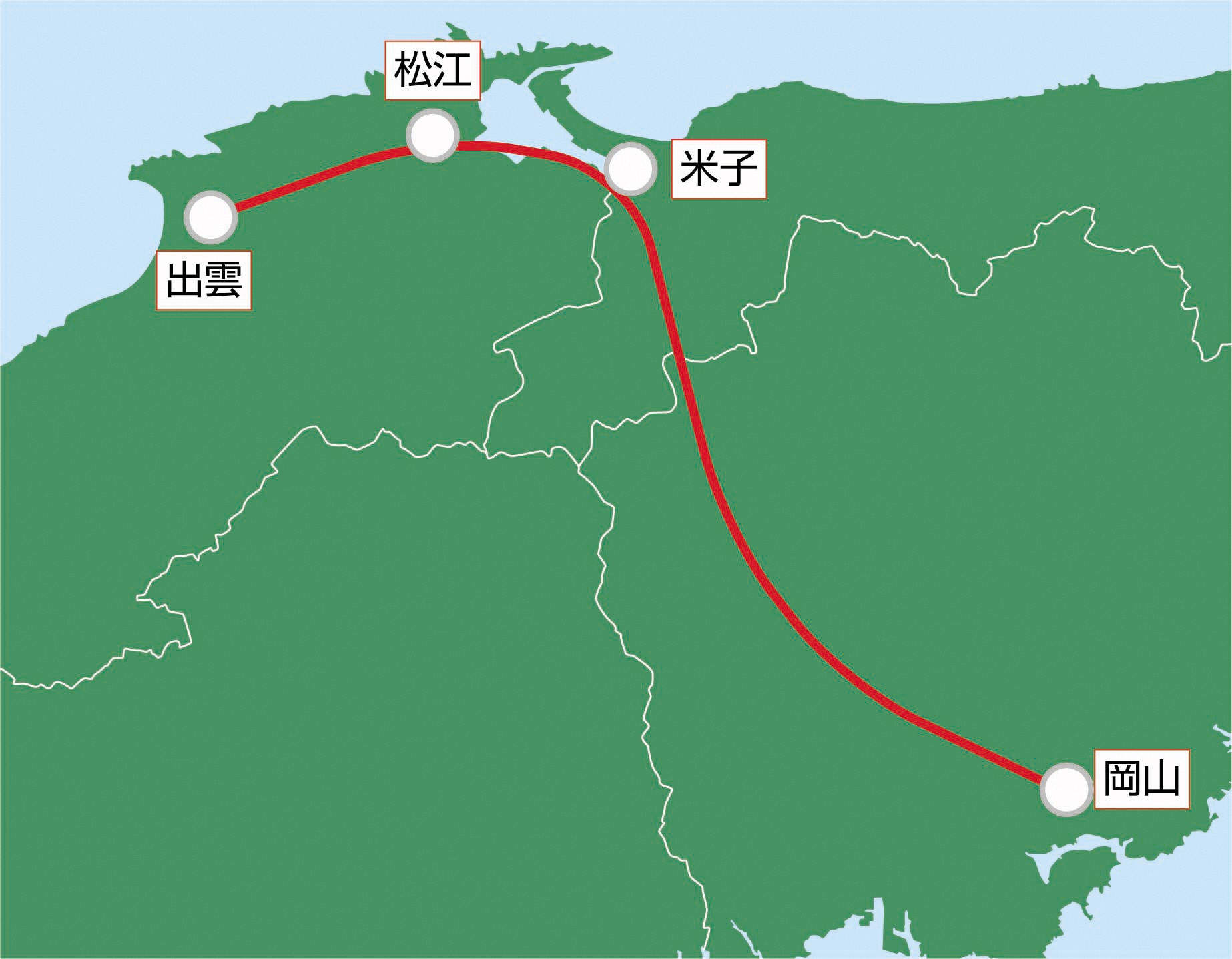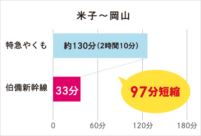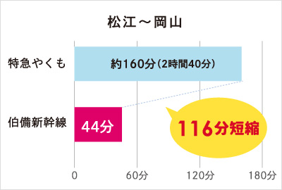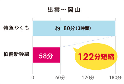中海・宍道湖・大山圏域と岡山市が1時間以内で結ばれ、大幅な時間短縮が実現します。
